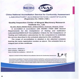 公司是國家高新技術企業(yè)、國家創(chuàng)新型試點企業(yè)、國家知識產權優(yōu)勢企業(yè)、寧夏知識產權示范企業(yè)、自治區(qū)專精特新示范企業(yè)、銀川市小巨人企業(yè)。公司擁有國家級模壓淬火技術與裝備國家地方工程實驗室寧夏裝備制造業(yè)技術服務與質量檢驗檢測服務平臺”,取得了CMA和CNAS資質,可向社會出具檢驗檢測報告;自治區(qū)級寧夏模壓淬火機床工程技術研究中心企業(yè)技術中心2003年通過ISO9001-2000質量體系認證,2014年通過CNAS國家實驗室認證,2017年通過國家質量/環(huán)境/職業(yè)健康安全管理體系認證。
